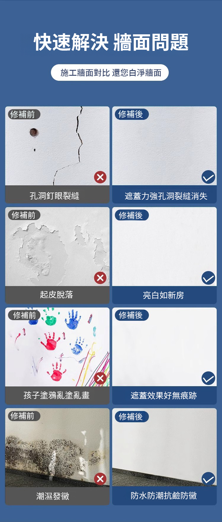 防水防黴牆面修補翻新膏