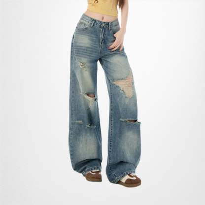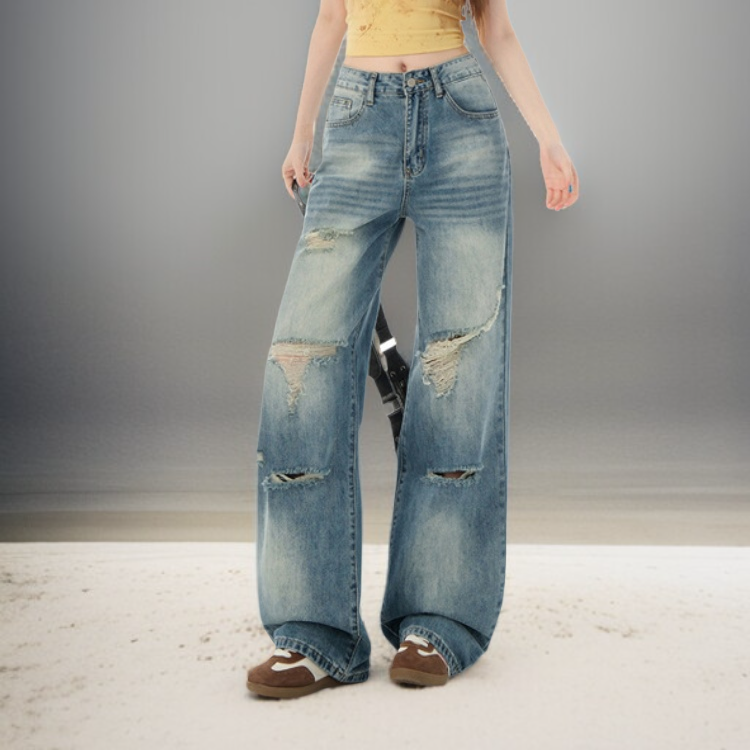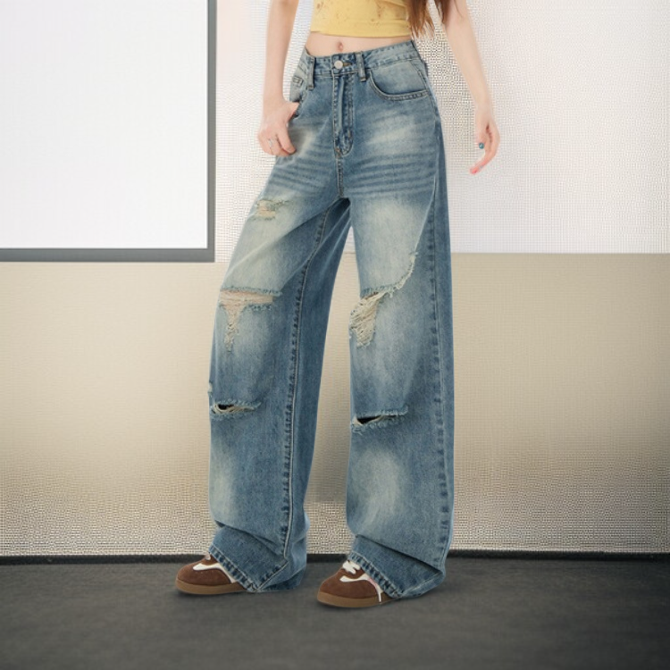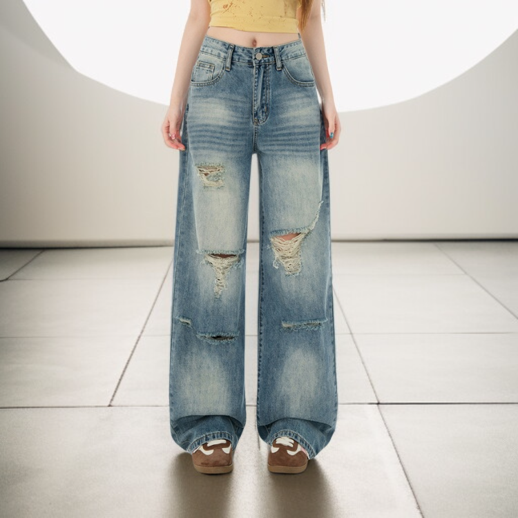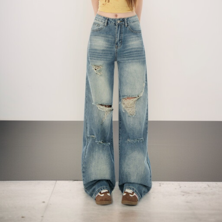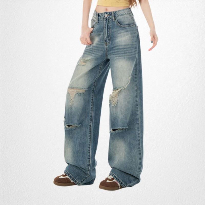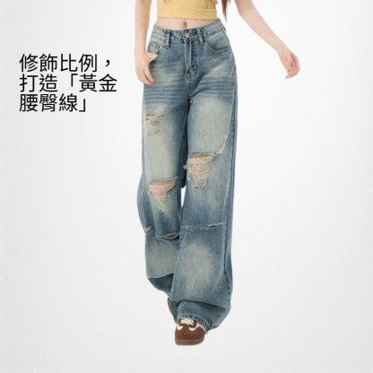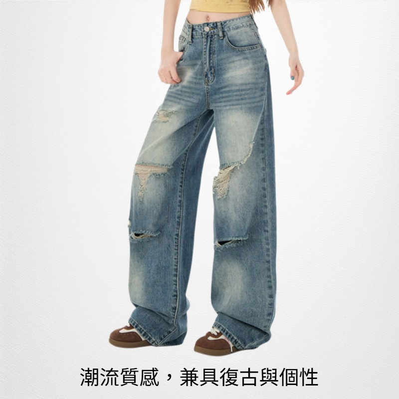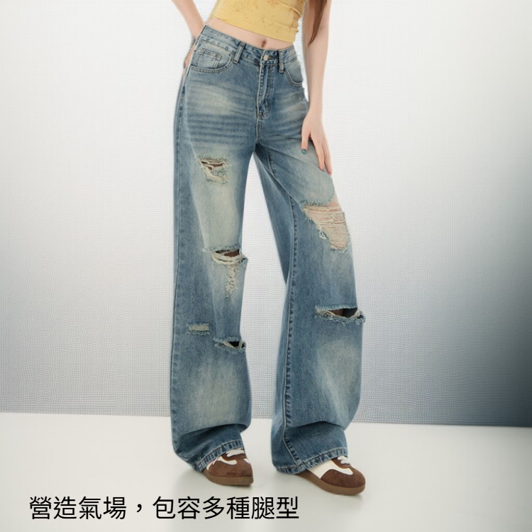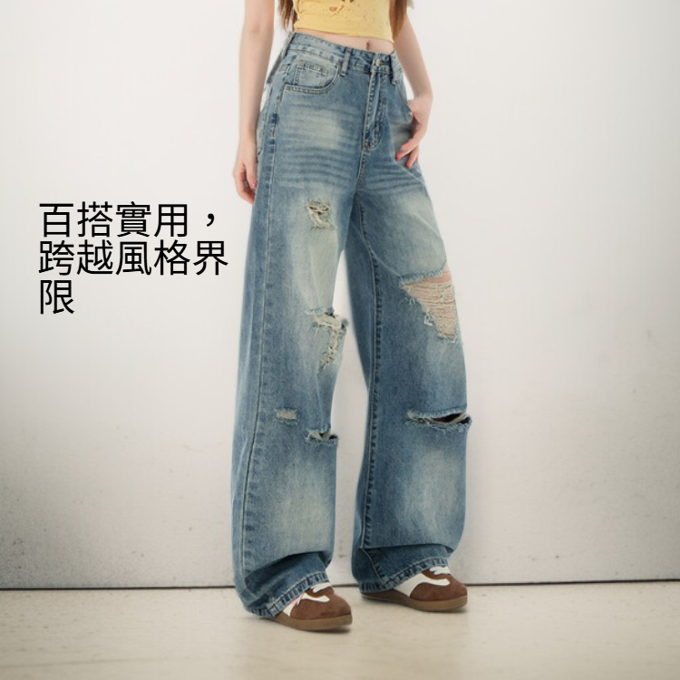 水洗闊腿牛仔褲